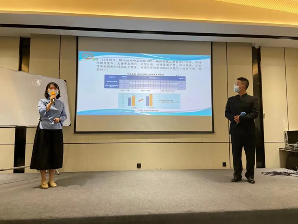 中立大樓項目“逐夢之筑QC小組”《提高PC小構(gòu)件施工質(zhì)量合格率》發(fā)布現(xiàn)場